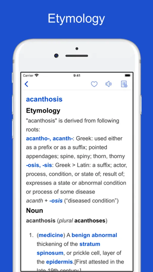 This app provides an etymological dictionary of medical terminology. It provides comprehensive and detailed account of the origins, history of and links between more than 48850 medical terms.