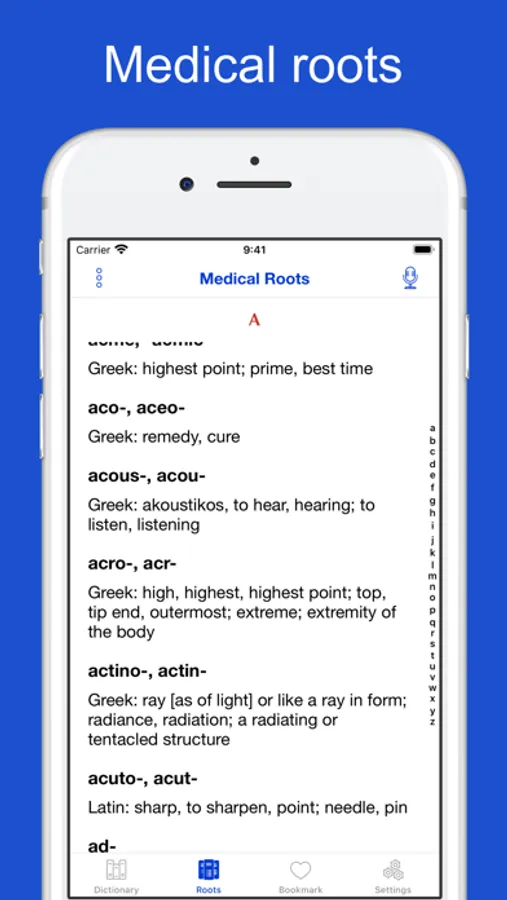 - Over 2100 medical roots from Greek and Latin