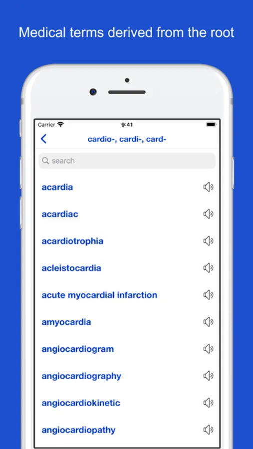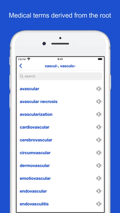 - Search by medical root or by meaning