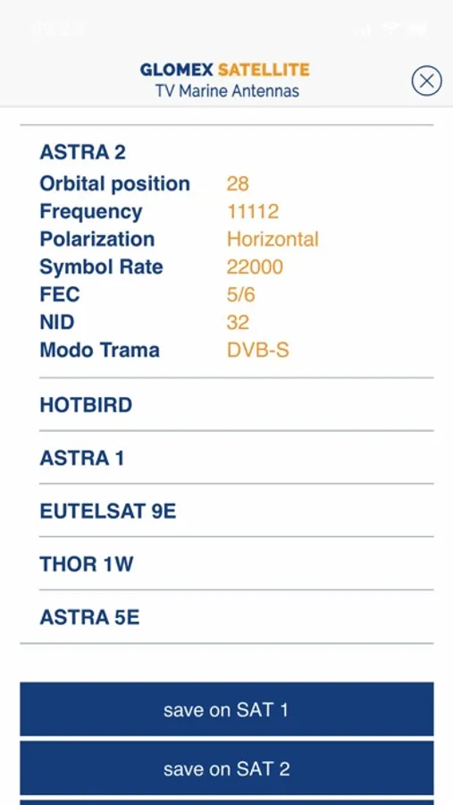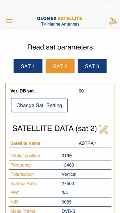 • Select and update the antenna satellites list via the App while you are comfortably seated.