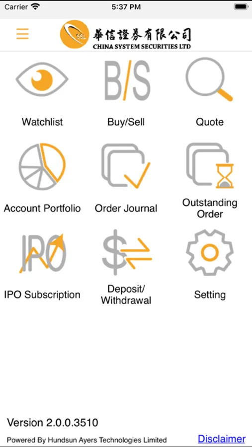 iOS應用程式支援繁、簡中文及英文。客戶可透過此程式進行證券交易,交易介面簡單易用, 並有多種買賣盤功能,是客戶快速流暢進行股票買賣的理想工具。