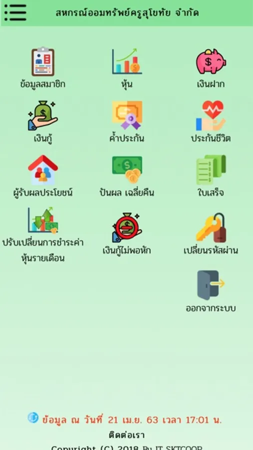 Sktcoop Application จากสหกรณ์ออมทรัพย์ครูสุโขทัย จำกัด สามารถตรวจสอบข้อมูลสมาชิกของท่าน เพื่อความสะดวกในการใช้บริการ สามารถตรวจสอบข้อมูลต่างๆ ของท่านได้ดังนี้