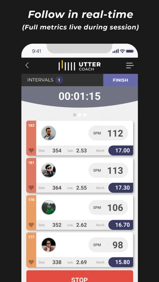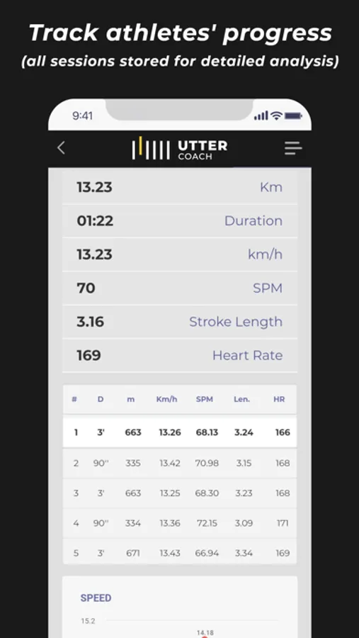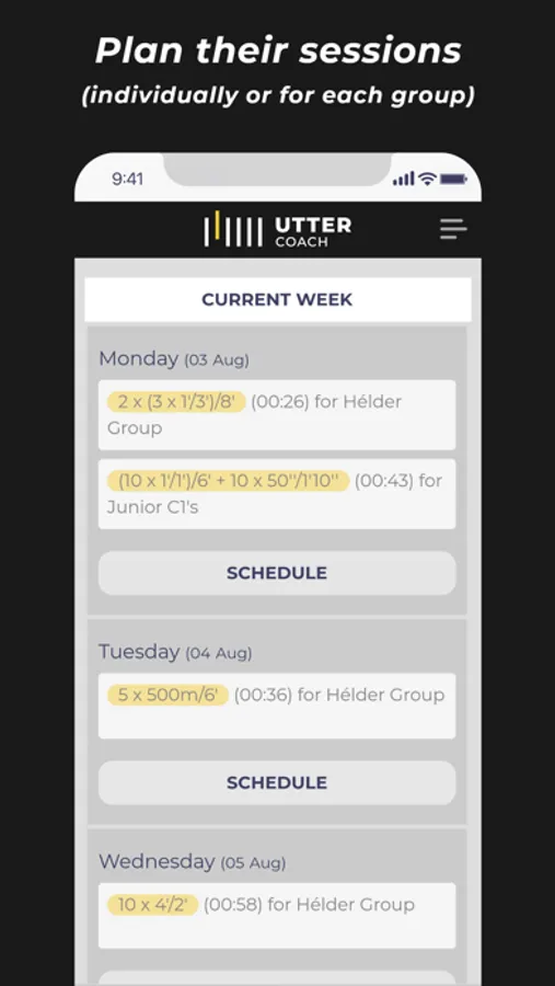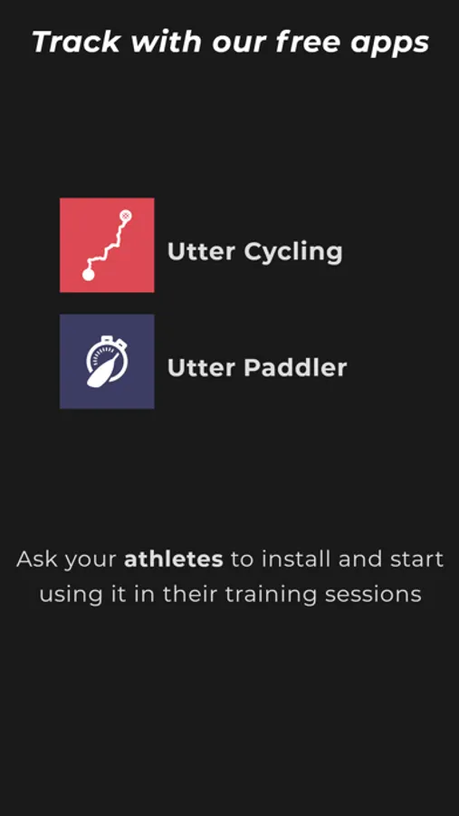 Utter Coach is a powerful tool to manage all your athlete's progress in a single place. Organize your team into groups, plan their sessions, and follow them in real-time (you will see their speed, distance, heart-rate, ... directly on your device).