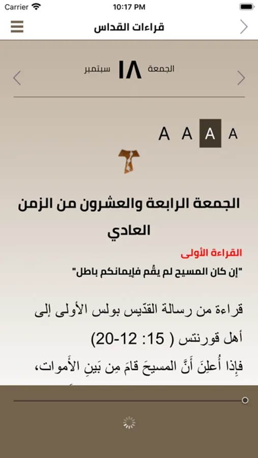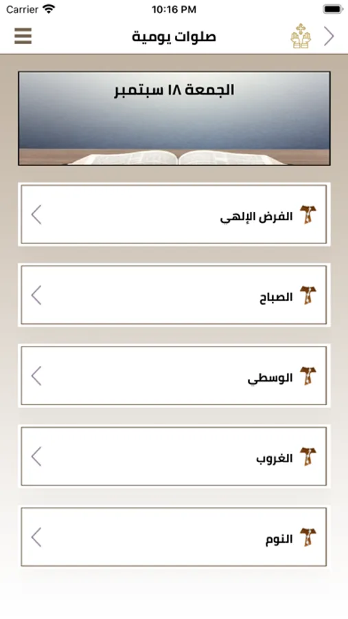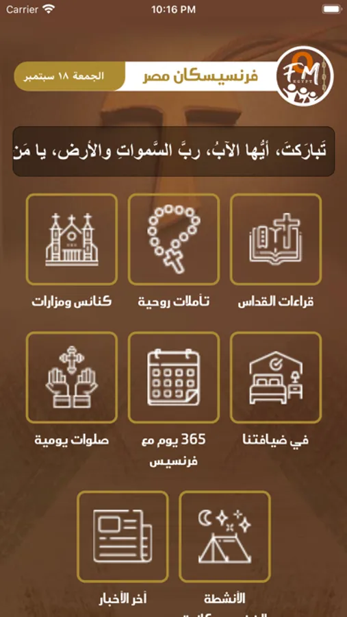 يمكنك متابعة قراءات القداس وصلوات الكنيسة اللاتينية يوميًا مع إمكانية سماع الإنجيل اليومي ومقتطفات من كتابات القديس فرنسيس. يتضمن أيضًا برامج الخلوات الروحية والأنشطة الفرنسيسكانية وأهم المزارات والكنائس الفرنسيسكانية بمصر وأماكن الضيافة بها.. وأخيرًا اخبار الرهبنة محليًا والكنيسة عالميًا.