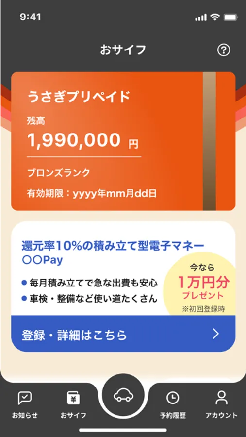 ・月々の積立で車検時の大きな出費に備えることができるプリペイドサービス『うさぎプリペイド』です