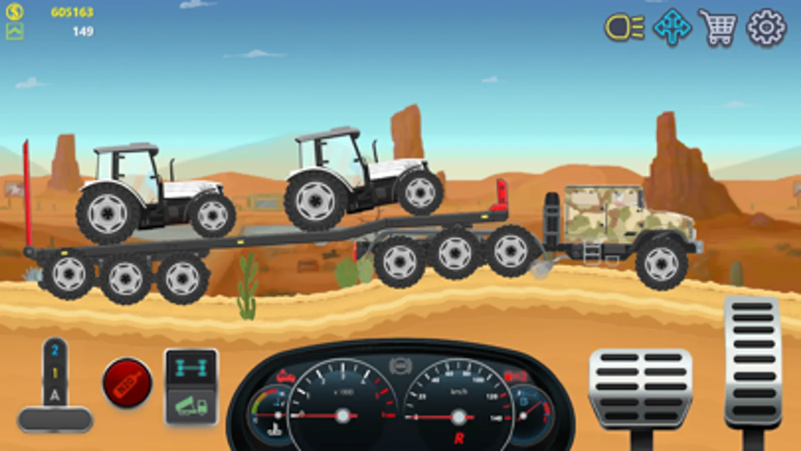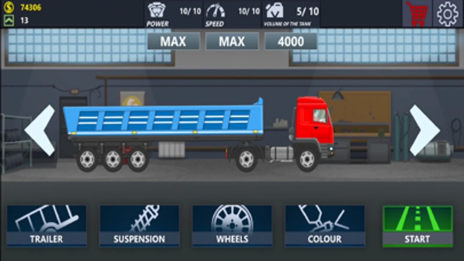Excellent 2D graphics, detailed trucks and cars, Working headlights for night trips, customization of trucks and cars is also available to you, you can change the colors, wheels and tires of cars.