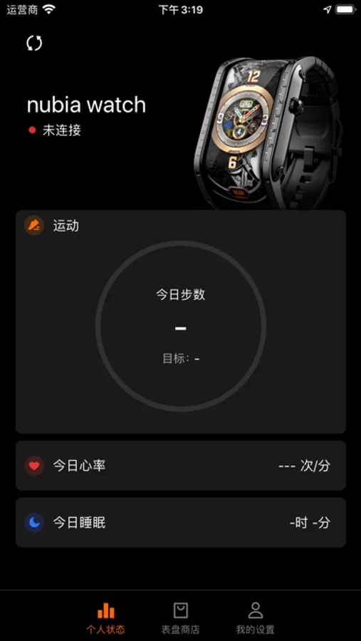 该应用同nubia watch蓝牙配对连接使用,用来和手表同步显示运动健康数据,音乐,日程和联系人,同时进行手表的基本设置。