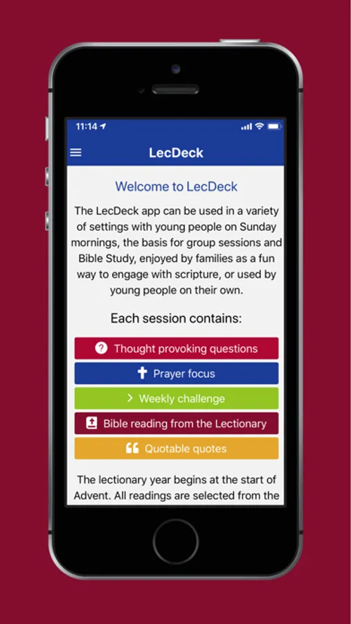The new LecDeck app now puts the resource on your phone and requires little to no planning and preparation. It has the potential to be used in multiple ways and place; youth groups, homegroups, Christian Unions, families at home, personal study, or even given to young people to use independently in a pew.