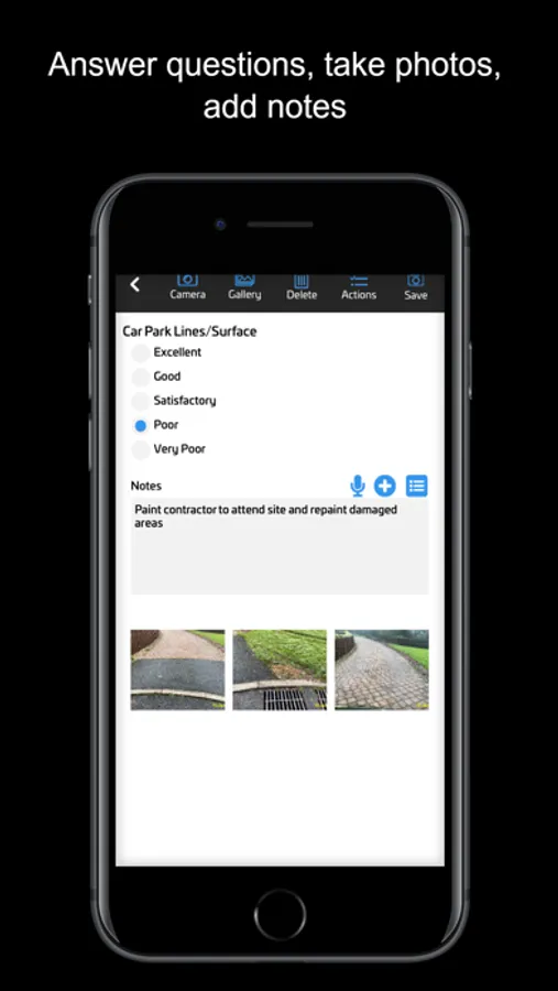 Designed to improve productivity and efficiency. Complete surveys, audits and site inspections straight from your smart-phone or tablet. Our easy to use digital forms let you attach photos, assign actions, and sign via the device, instantly generating a detailed PDF report.