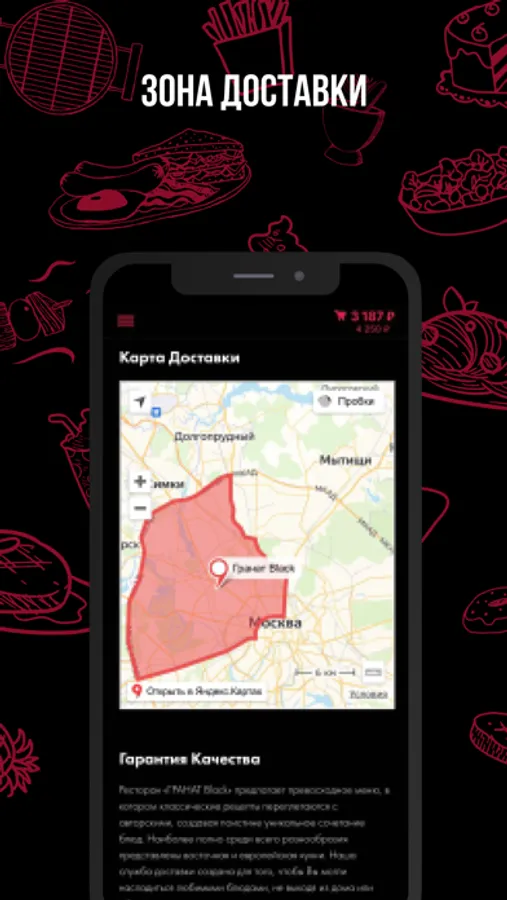 — зоны доставки - на карте в разделе «Условия доставки мобильного приложения»;