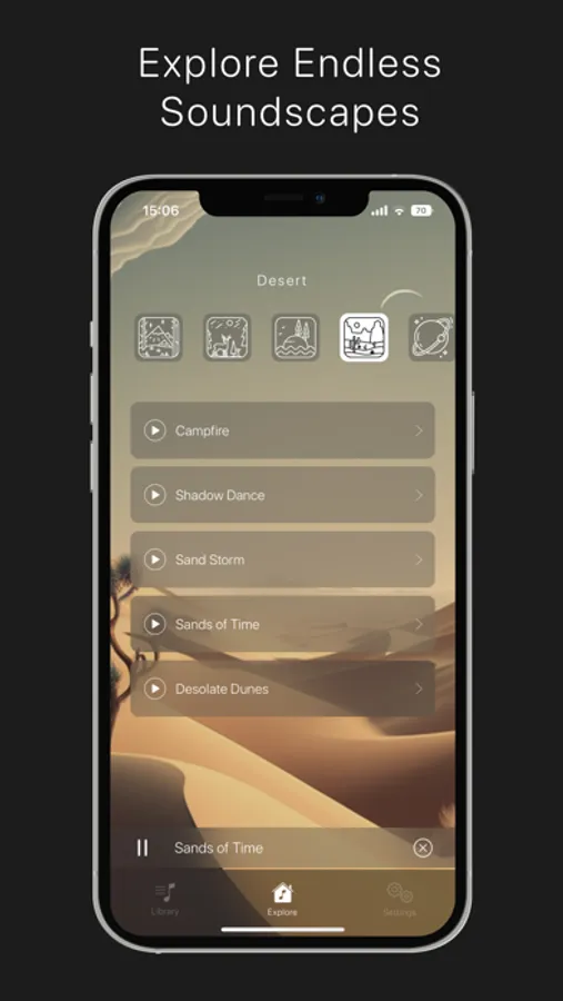 The soundscapes are composed of Ambient Music and Natural Sounds, which guide you to the flow state by avoiding the mood swings, usually caused by changes in tempo, pitch, and colour of the sound.