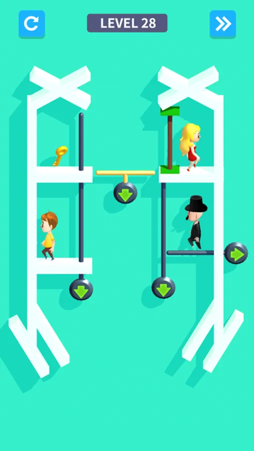 YOU gotta SAVE YOURSELF, and GET to SAFETY! PIN your way to VICTORY! ESCAPE and SOLVE with that BIG BRAIN of yours! Watch out for ROBOT ANIMALS! ROAR! They are MALFUNCTIONING and going to DESTROY ALL HUMANS! The MAD SCIENTIST has gone TOO FAR! WHOA! Stay away from BOMBS! GET the GIRL of your DREAMS from EVIL MACHINES! Protect her from the THIEF and ESCAPE!