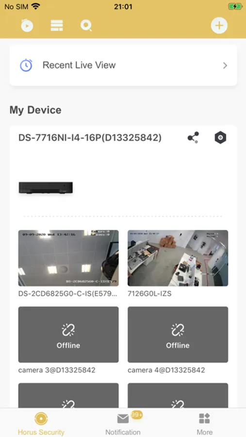 The HORUS-security app is designed to work with Horus series DVRs, NVRs and IP cameras which support Cloud P2P function. It allows you to live view your cameras remotely. All you need to do is creating an account and adding device into the account, then you can enjoy the real-time video from cameras on a global scale. It also allows you to play back recorded video to search every milestone of your life. When motion detection alarm of your device triggered, you can get an instant message notification from HORUS-Security app.