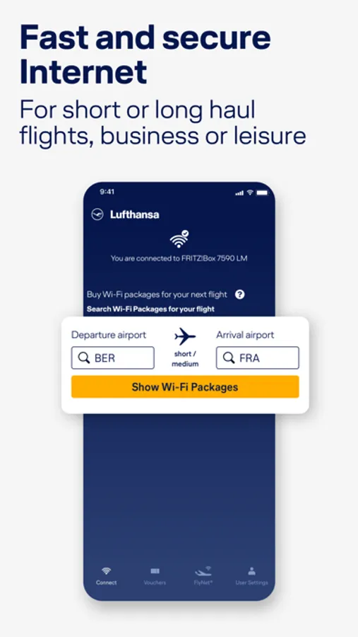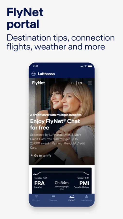 Send your precise arrival time to your family on WhatsApp, email your colleagues or search online for a gift for your parents. With Lufthansa FlyNet® your communication options are simply limitless.