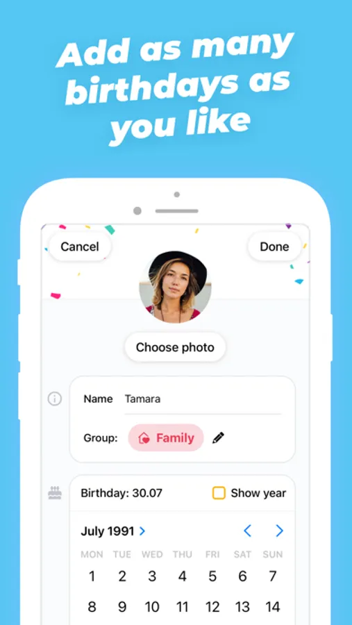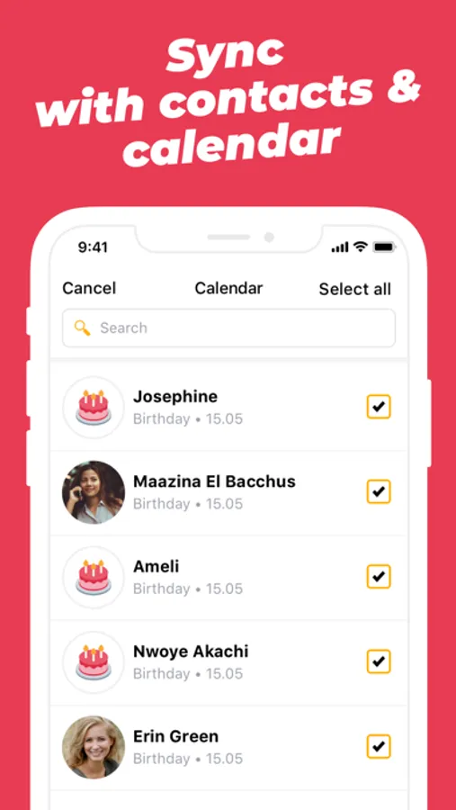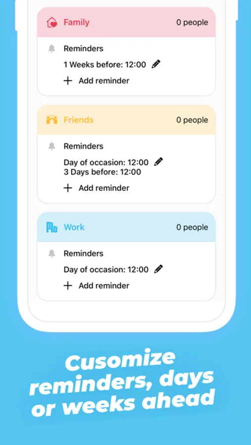 • Arrange your contacts into groups and customize their appearance and reminders!