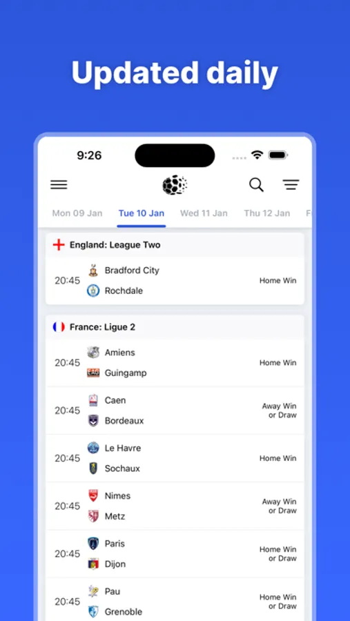With our app, you can access expert predictions for a wide range of football matches, including major leagues and tournaments around the world. Our team of football analysts and tipsters uses advanced algorithms and data analysis to provide accurate predictions and analysis based on historical and real-time data. We take into account a variety of factors, including team form, head-to-head records, injury and suspension news, and betting trends and patterns.