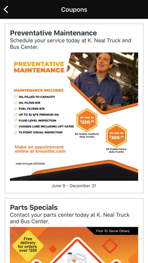 K. Neal Truck and Bus Center dealership loyalty app provides customers with an enhanced user experience, including personalized coupons, specials and easy service scheduling.