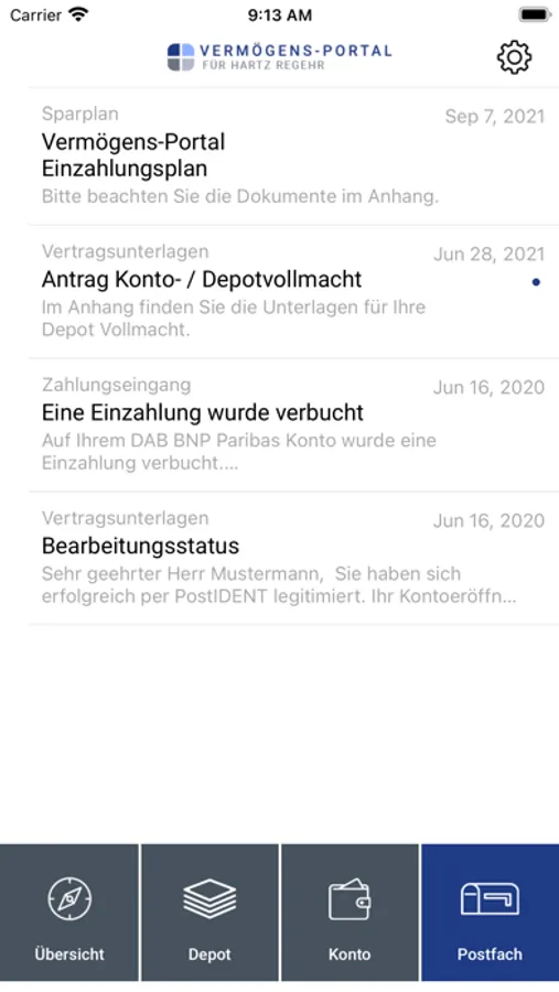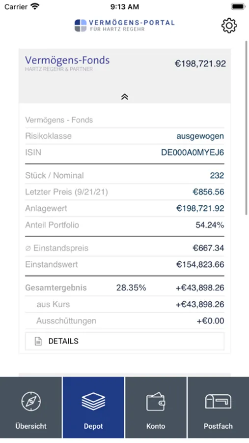 vermoegens-portal.de ist eine digitale Anlagelösung, um direkt in die vermögensverwaltenden Fonds von Hartz Regehr zu investieren. Kunden erhalten ein persönliches Konto und Wertpapierdepot bei der DAB BNP Paribas und über die Benutzeroberfläche von vermoegens-portal.de die Möglichkeit, selbstverantwortlich Kauf- und Verkaufsaufträge zu platzieren, Spar- und Auszahlungspläne einzurichten oder Auszahlungen zu veranlassen. Über das persönliche Finanzcockpit behält der Kunde seine Vermögensanlage hinsichtlich Wertentwicklung und Assetverteilung jederzeit im Blick. Technisch bereitgestellt und operativ betrieben wird die Plattform durch FINTEXLAB.