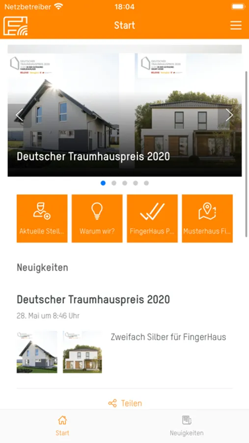 »FingerFunk« ist die zentrale Kommunikations- und Informations-App der FingerHaus-Gruppe – einer der führenden Hersteller von Häusern in Holzfertigbauweise in Deutschland.