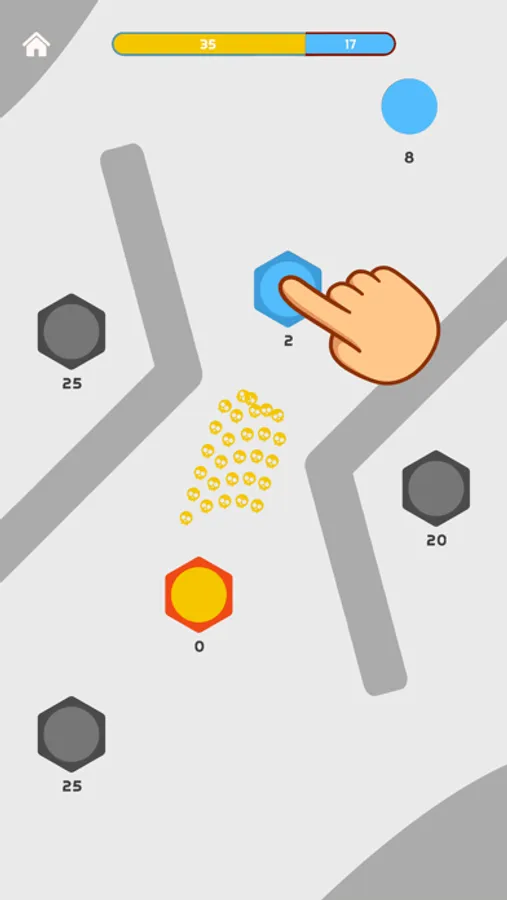 Start a level with launching a full-scale attack or provoke your enemy to waste cells by making the first move. Defend your dots & fight back to take control of the exhausted cells. There are numerous ways to win in this minimalistic strategy game.