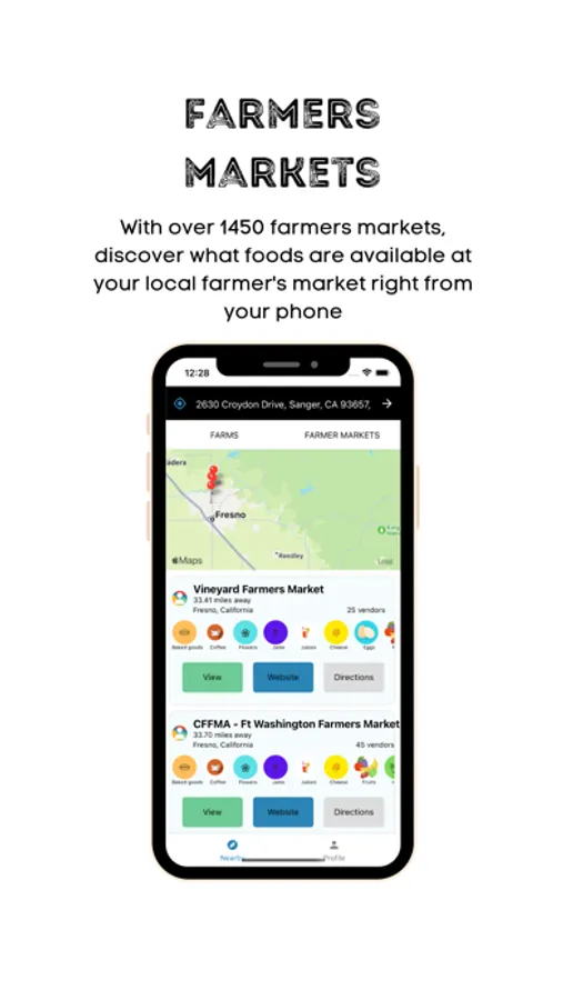 Exclusive farmer's market information: Access detailed information on over 1,450 verified farmers markets, including product offerings and vendor information, before leaving your home.