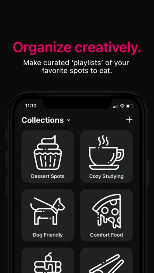 • Create playlists of what to eat in any place, event, or mood