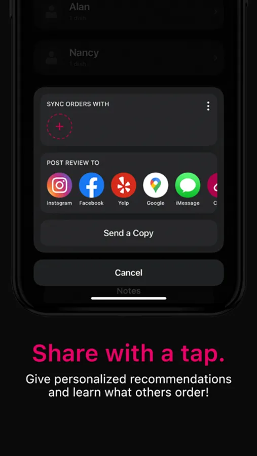 And most excitingly, sync with friends in real time—think Google Docs for restaurant orders. Even use AI to post custom restaurant reviews to Yelp, Instagram, and all your favorite platforms right from Phissy.