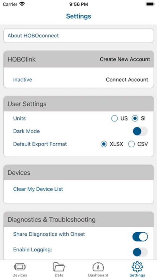 HOBOconnect is designed to communicate wirelessly via Bluetooth Low Energy to the HOBO® MX data loggers. You can configure and start the data logger, download the recorded data, store and analyze the data. The data can be viewed in both graphical and list formats and also exported and shared to other programs including Numbers, Excel and HOBOware®.