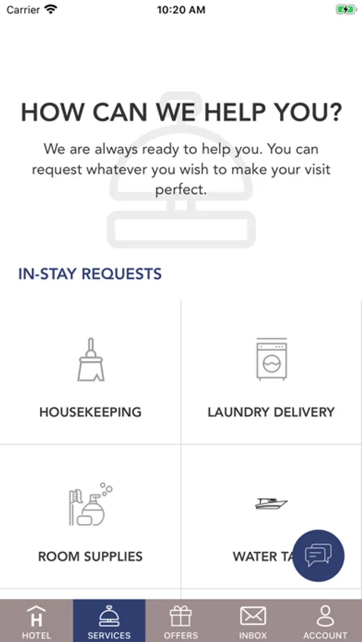 You can chat with our hotel staff regarding your guest service requests by the application and send your requests and feedback to us directly. We will be working to provide the best service instantly by evaluating the surveys regarding your experiences which we will send by the application while you are using it.