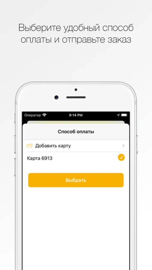 Выберите способ оплаты: Наличными или картой. Примите правила оплаты и нажмите кнопку “Заказать”.