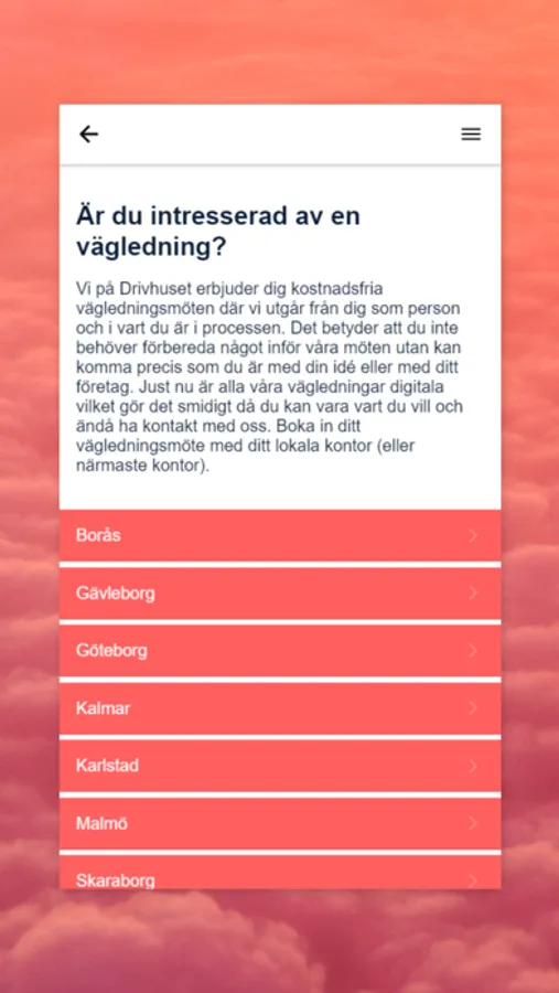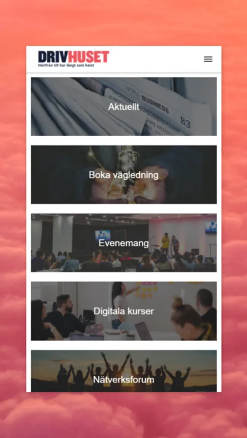 Drivhuset stöttar idésprutor, frilansare, företagare, eldsjälar och förändringsfantaster på utvecklingsresan. I vår app kan du bland annat se vad som händer just nu, läsa om våra aktuella evenemang och utbildningar, hitta utbildningsmaterial och boka vägledningar hos oss. Härifrån – till hur långt som helst.