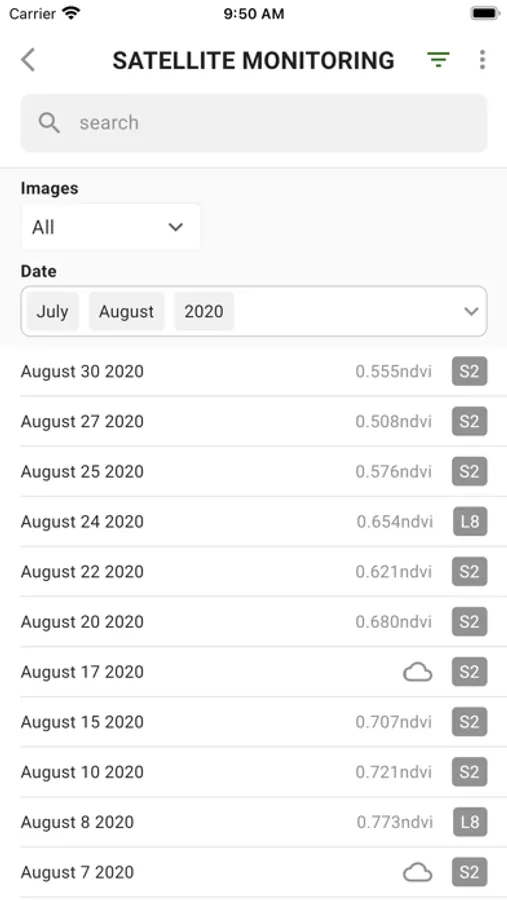 - Field and region level satellite monitoring (12 indices, incl. LAI, EVI, NDVI, NIR, etc.)