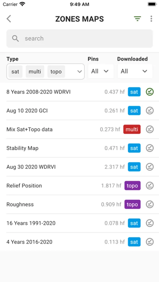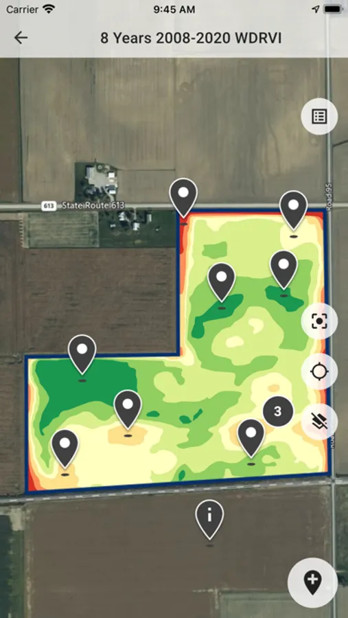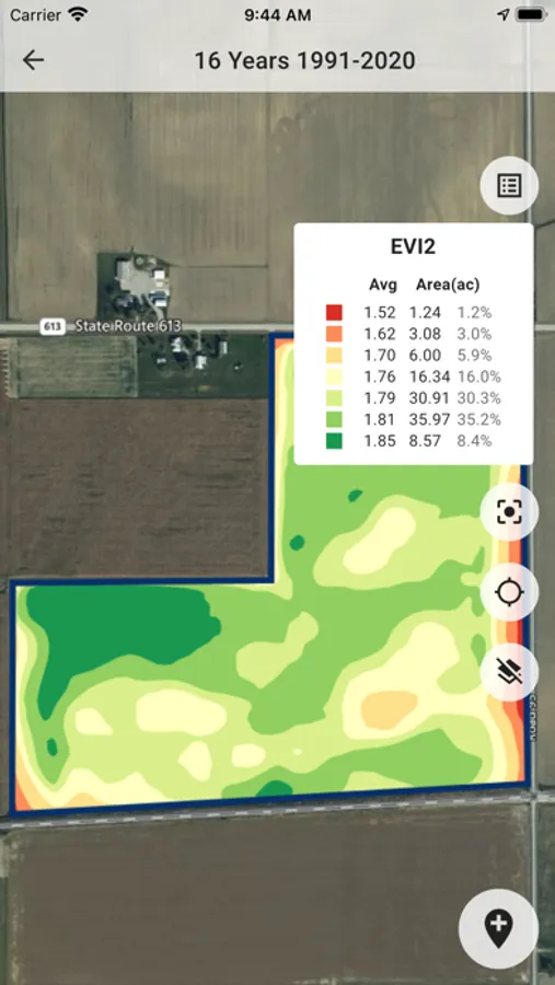 - Automated multi-year field potential zones (up to 32 years) and in-season field management zones