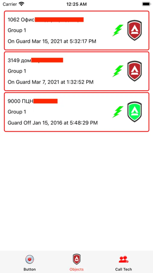 • We have added the “Objects” tab, displaying the security status of the objects and the state of the main power supply of 220V at the facility. If you are listed as responsible for the object protected by us, you can register and gain access to information.