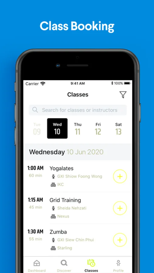 - Book classes with your favorite club
