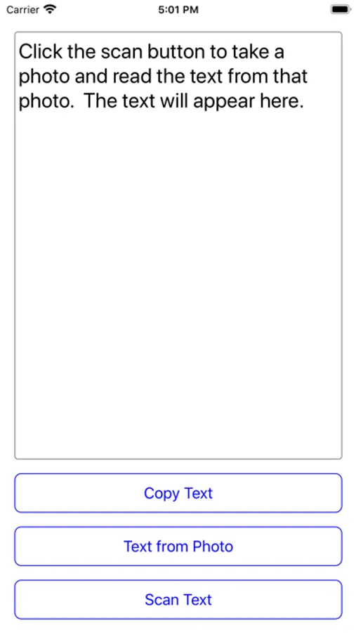 Reads text from photos in your photo album - or - reads text from photos you snap in the app.
