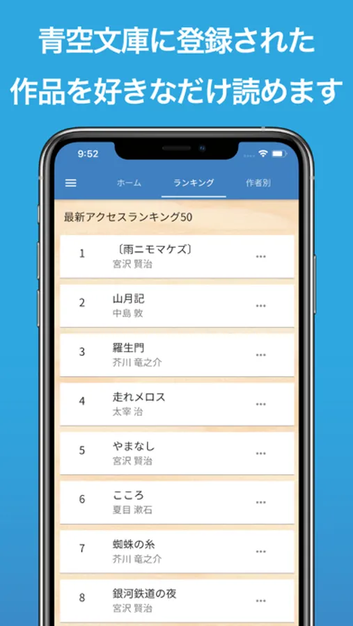 ・青空文庫の最新アクセスランキングを1位から50位まで並びます。