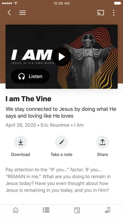 - Watch our sermons and classes, using Chromecast and AirPlay to play them at home