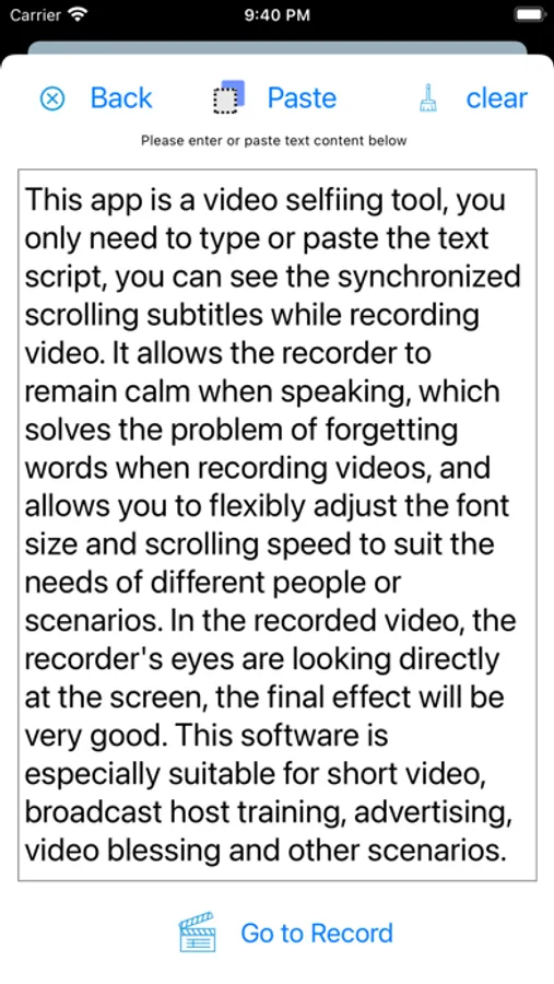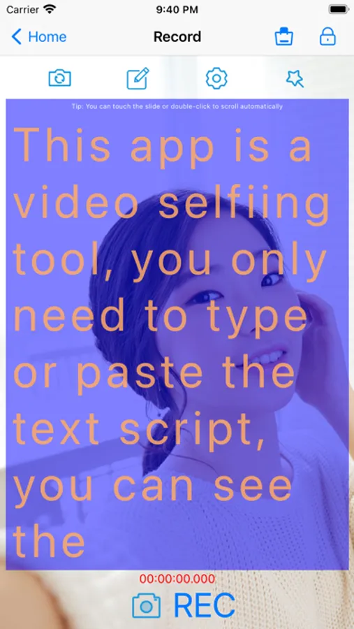 This app is a video selfies tool, only need to input or paste the text script, you can see the simultaneous scrolling subtitles while recording video. It allows the recorder to remain calm when speaking, which is a good solution to the problem of forgetting words when recording videos, and it can also flexibly adjust the font size and scrolling speed to suit the needs of different people or scenarios. In the recorded video, the recorder's eyes are looking directly at the screen, the final effect will be very good. This software is especially suitable for short video, broadcasting training, advertising, video blessing and other scenarios.