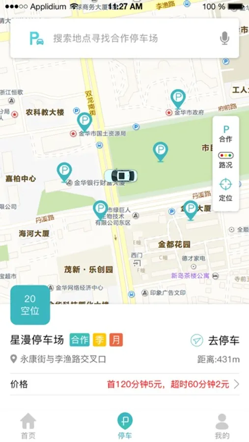 【停车场查询】实时了解停车场位置、价格、剩余车位等停车信息;