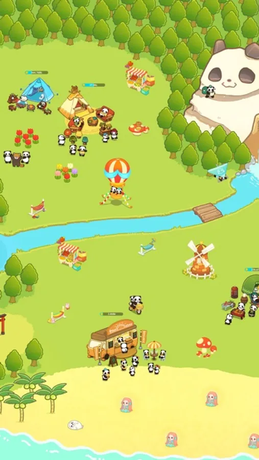 「脱出ゲーム パンダ大脱走」のキャラクターたちが、バカンスでキャンプ島に旅行にきました。こっそりついてきたパンダたちが自由に遊びまわる楽しいキャンプのはじまりです!