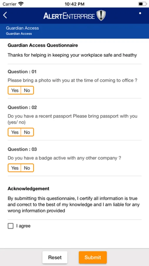 The app provides the data from the user . This data helps further in reviewing the access of the person and helps in decide whether to provide access to the user of not.
