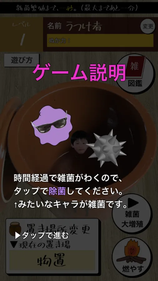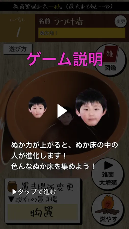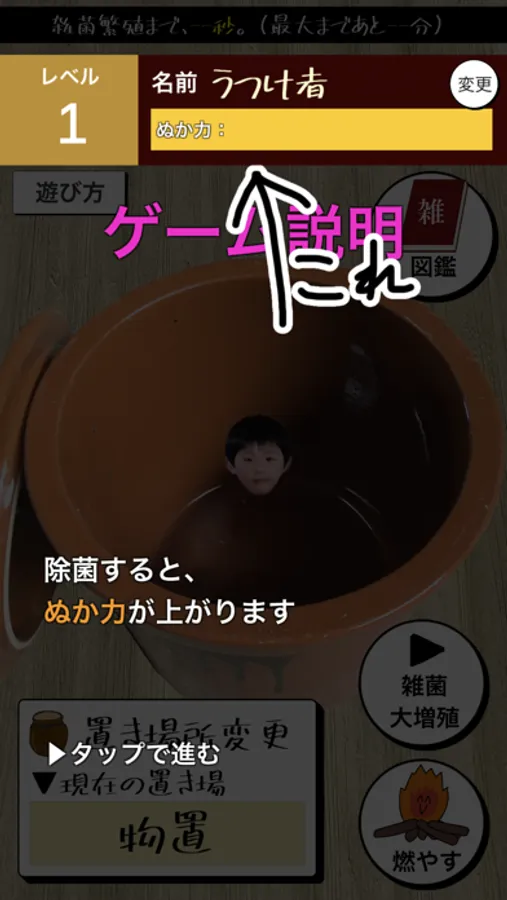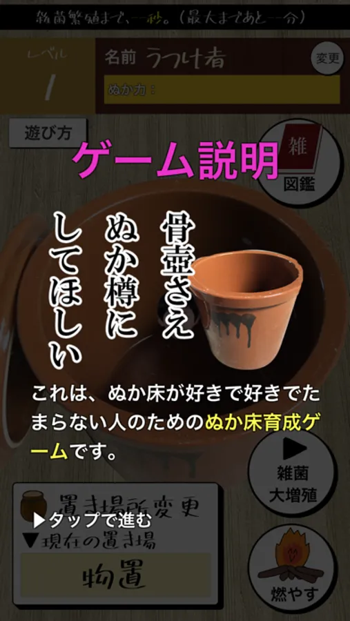 ぬか床が好きで好きでたまらない人のためのぬか床育成ゲームです。