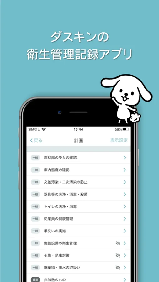 ◆管理項目の初期設定は「HACCPの考え方を取り入れた衛生管理」小規模な一般飲食店事業者向け手引書に準拠してセットされています。ご利用施設に合わせて、管理項目の追加・変更が可能。