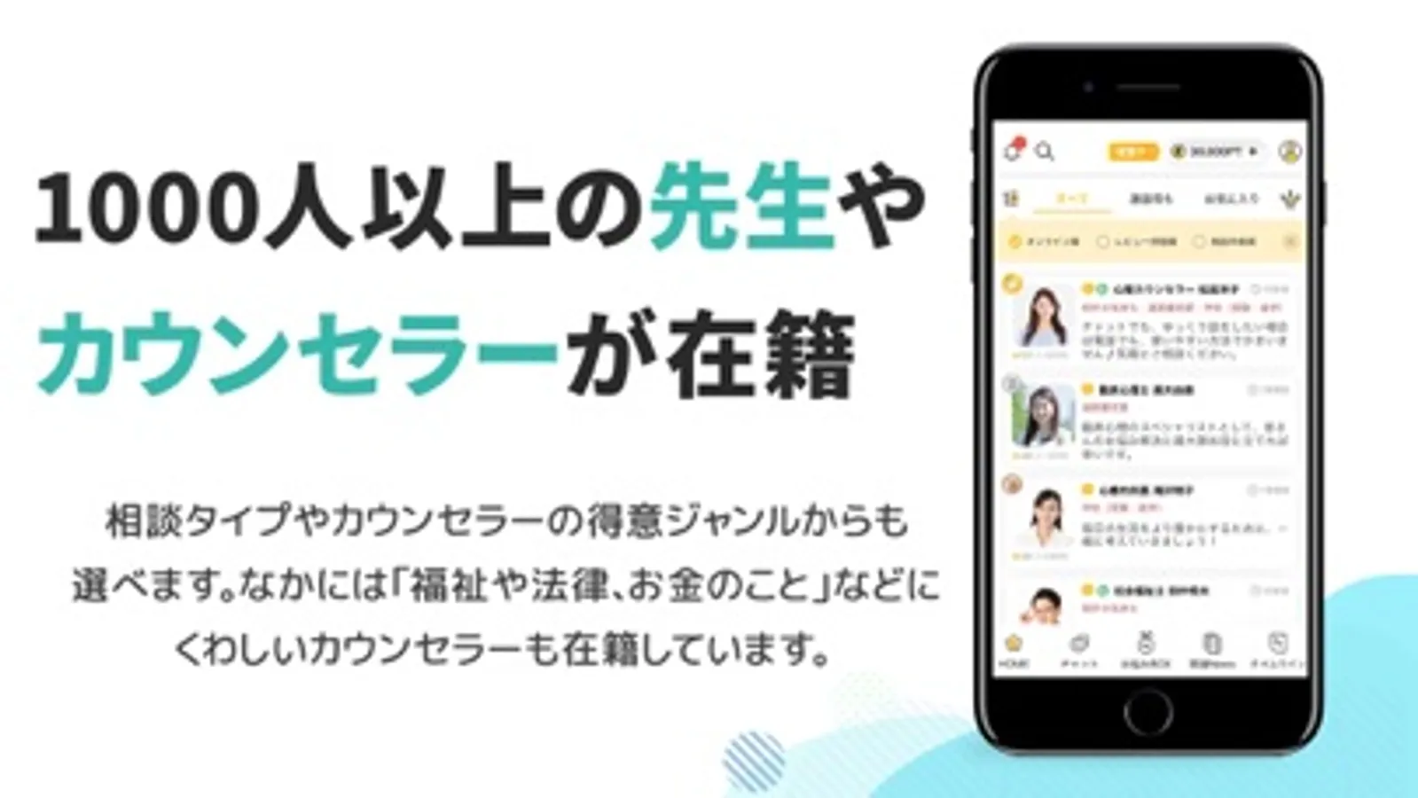 カウンセラー、臨床心理士、就労支援アドバイザー、セラピストその他沢山の先生が登録していますので、日常のストレスやメンタルの悩みをチャットや通話で自分に合う先生に相談をすることができます。