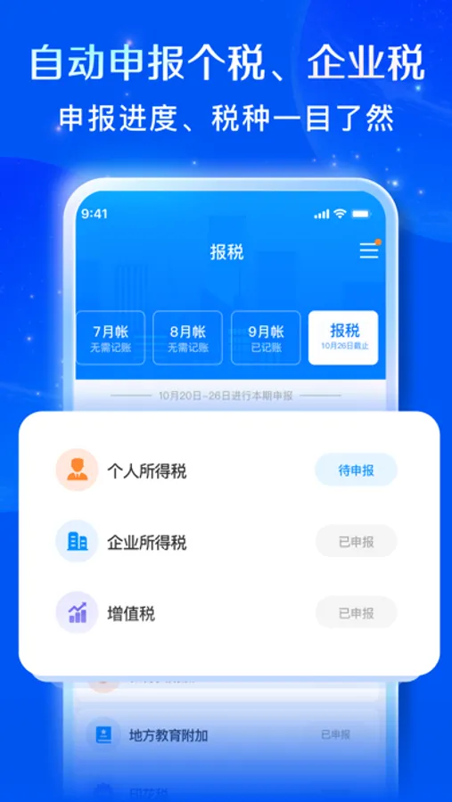 【支持企业税】支持报企业各项税种,包括增值税,企业所得税,各种城建、教育附加税等;