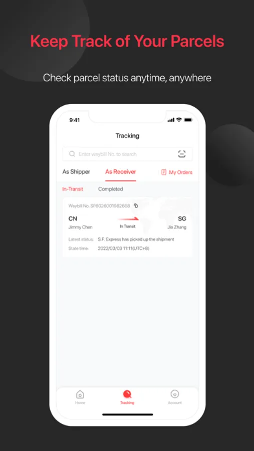 SF Express Intl. is a multi-functional App that supports shipping parcels, tracking parcels and managing orders in countries/regions other than Greater China(Chinese Mainland, Hong Kong/Macao/Taiwan China).