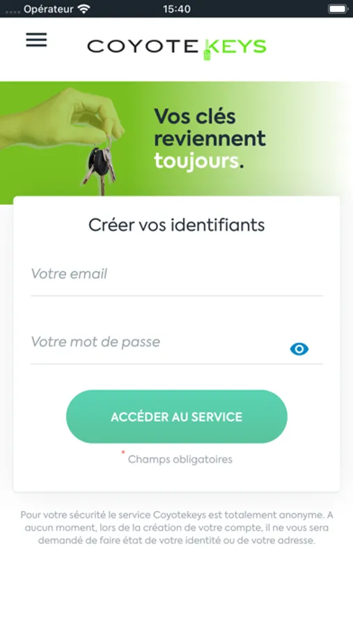1 - Créez votre compte anonyme sur www.coyotekeys.com