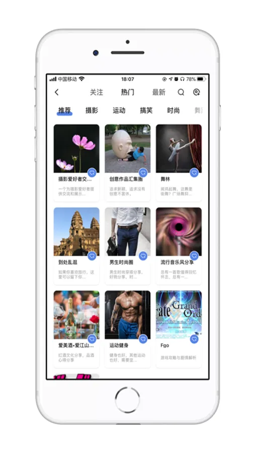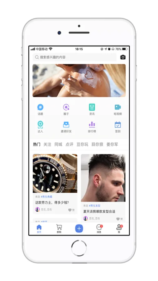 发布浏览生活动态(文字、图片和视频),可关联话题和圈子,分享位置。发现新鲜事物,一起分享美好生活。
