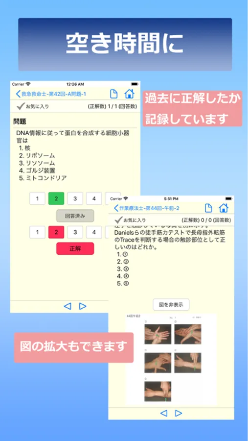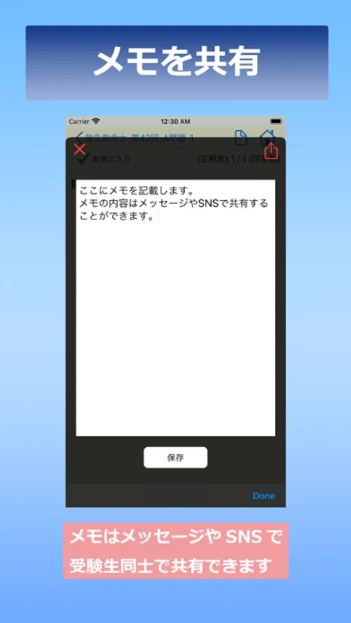 あらかじめご了解していただきたいのは、このアプリには問題ごとのメモ機能がありますが解説はありません。ですので、これから国家試験の勉強を始める方にはあまり役に立たないかもしれません。全範囲を一度勉強されてからのご利用をお待ちしています。